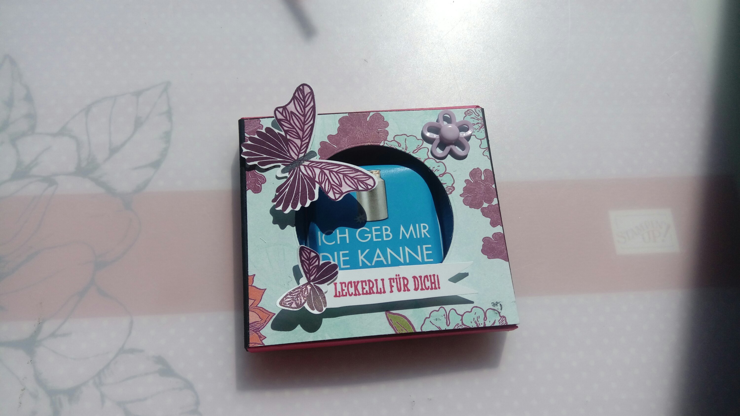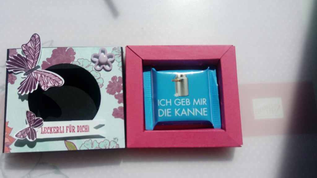 So eine Verpackung ist die folgende. Eigentlich nur eine kleine Schokolade, aber in dieser Shadow-Box kommt sie um einiges wertvoller daher.