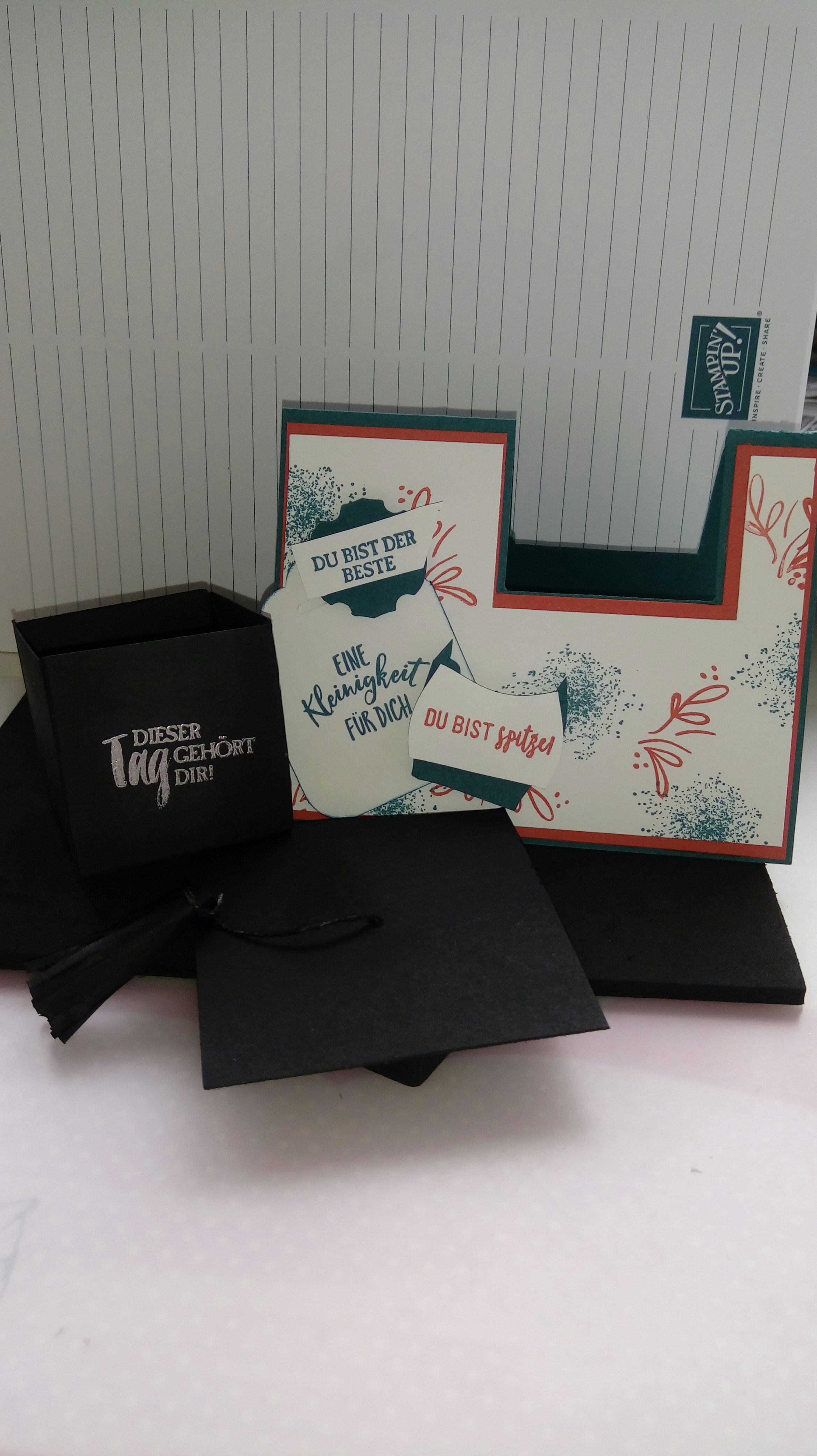 Eine potentielle Idee habe ich hier gebastelt. Dabei handelt es um eine Karte, auf die eine Box gesteckt werden kann. Die Box ist 5x5cm groß und bietet so einigen Platz für die großen Scheine 😉