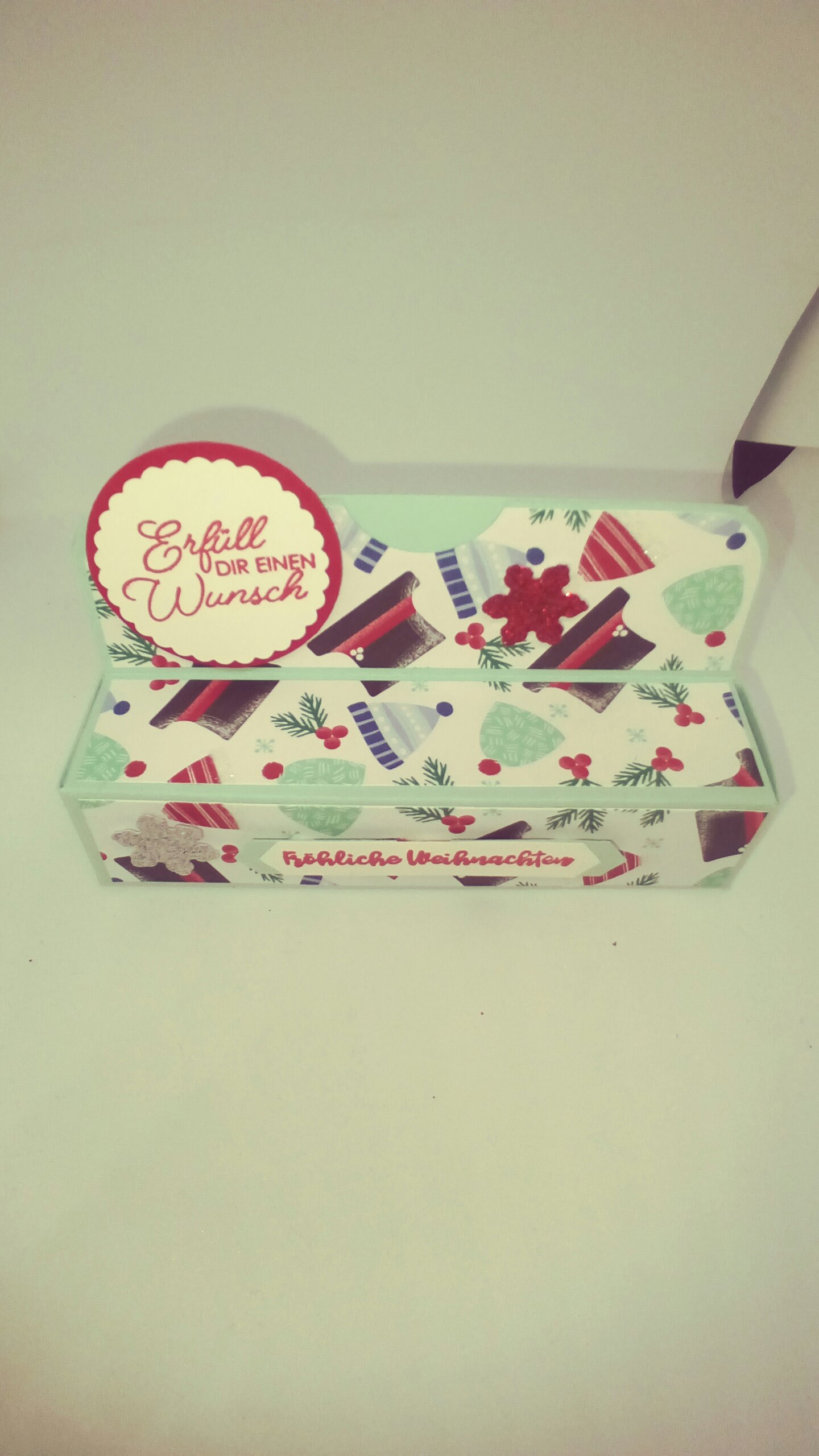 Eine Box, in die man kleine Kosmetik-Artikel oder Süßigkeiten unterbringen kann. Der Clou ist aber das dezente Gutschein-Fach.